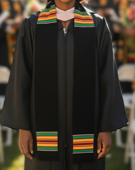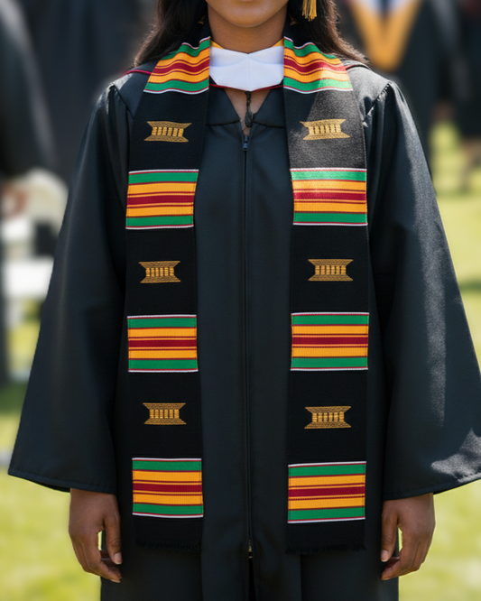 UMOJA Unity Stole, Black with Gold and Green African Kente Graduation Stole